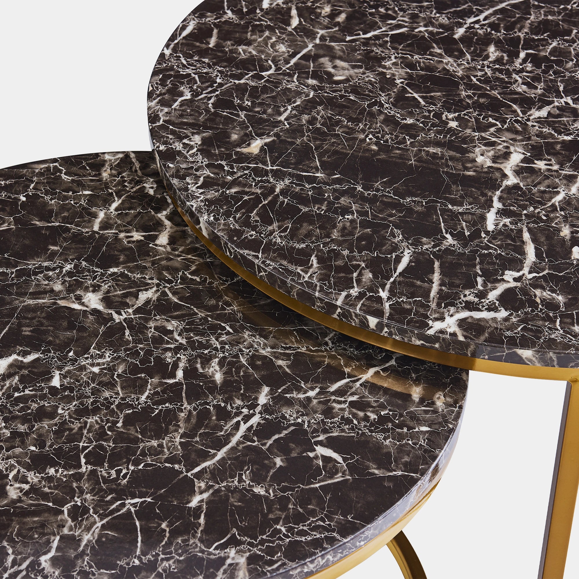 Un toque de lujo y modernidad para tu living, este set de mesas combina una base metálica dorada con cubiertas efecto mármol, creando un contraste elegante y sofisticado. Su diseño anidado permite usarlas juntas o por separado, adaptándose a cada espacio y ocasión