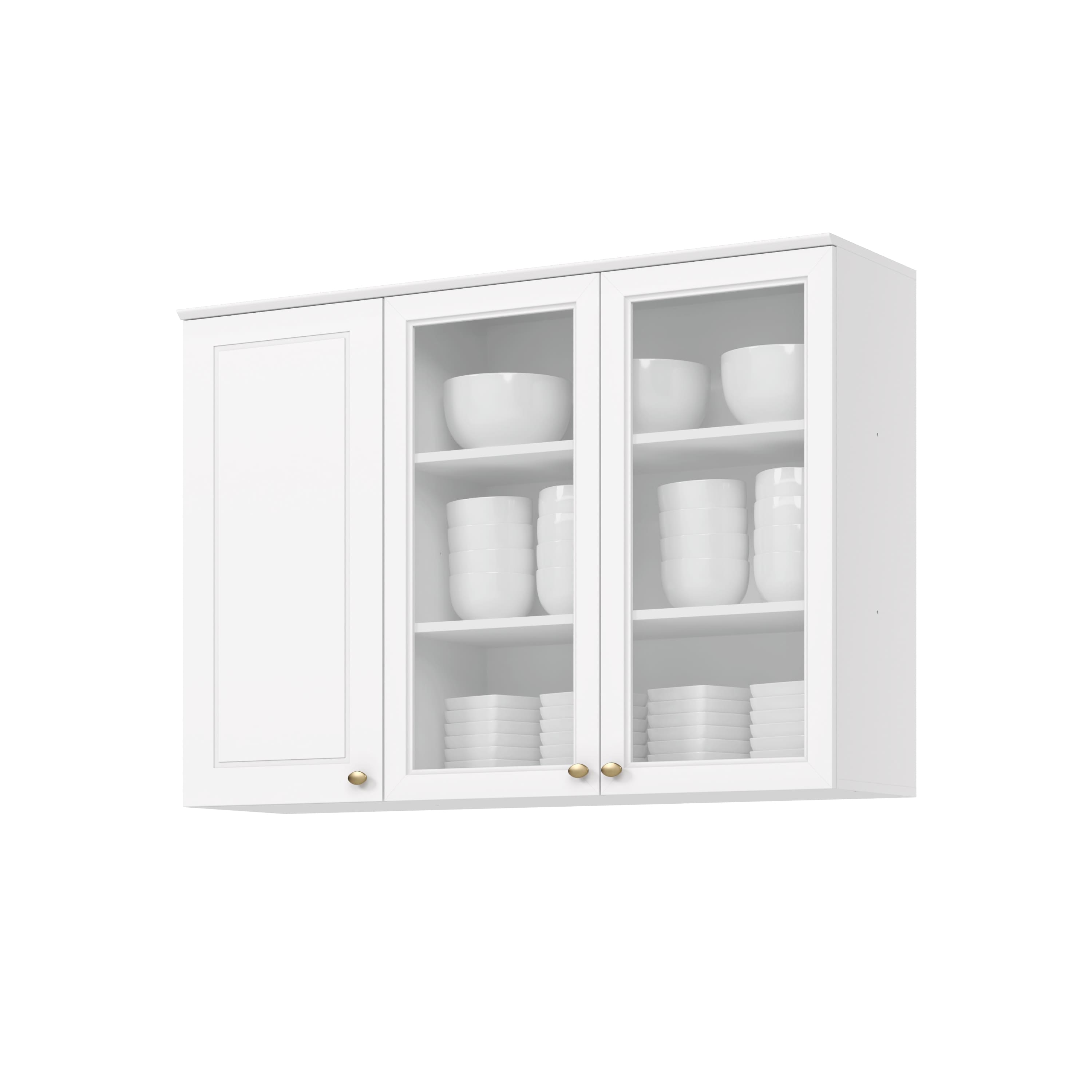 - Modulo aéreo tres puertas con bisagras metálicas de cierre suave, tres repisas internas, manillas metálicas, dos de sus puertas con vidrio.
