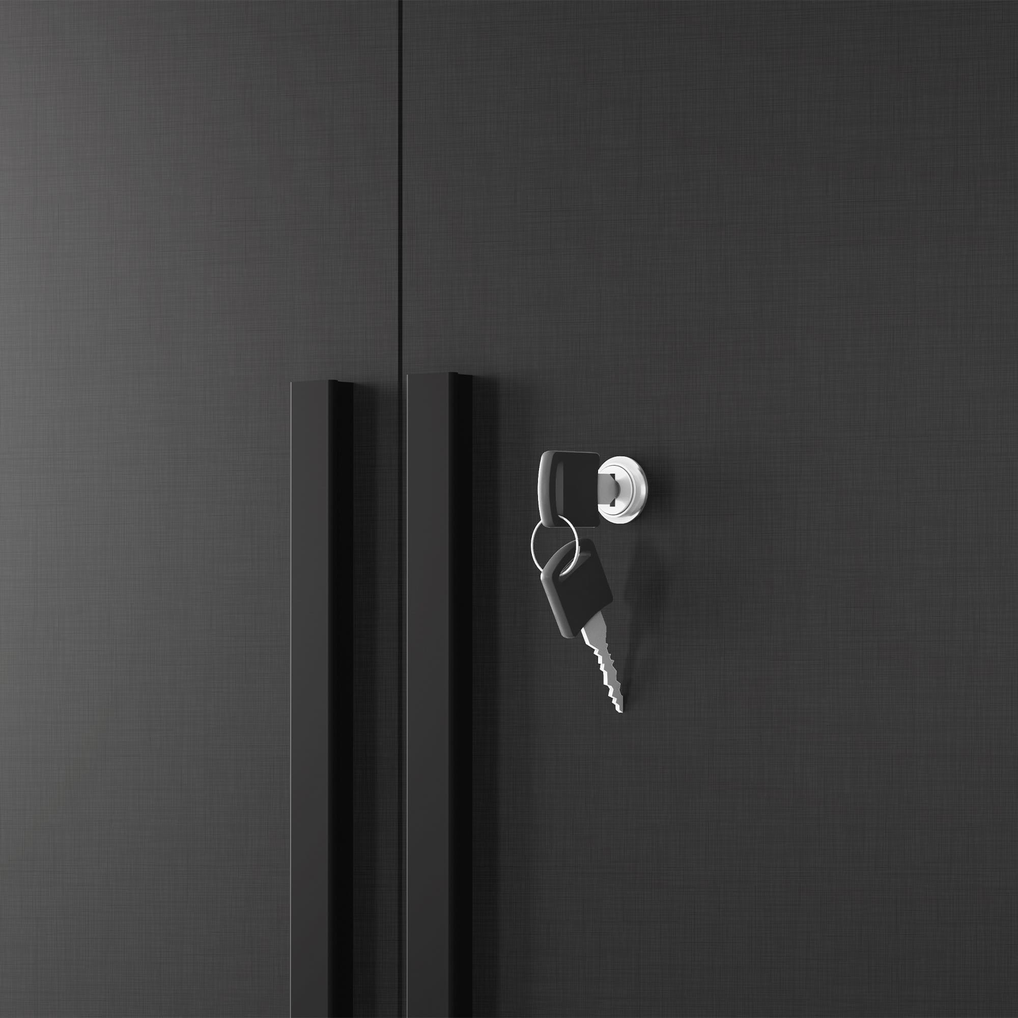 Mueble para organización multiuso, despensa de dos puertas con bisagras metálicas, la puerta incluye llave, repisas interiores, manillas de MDF.