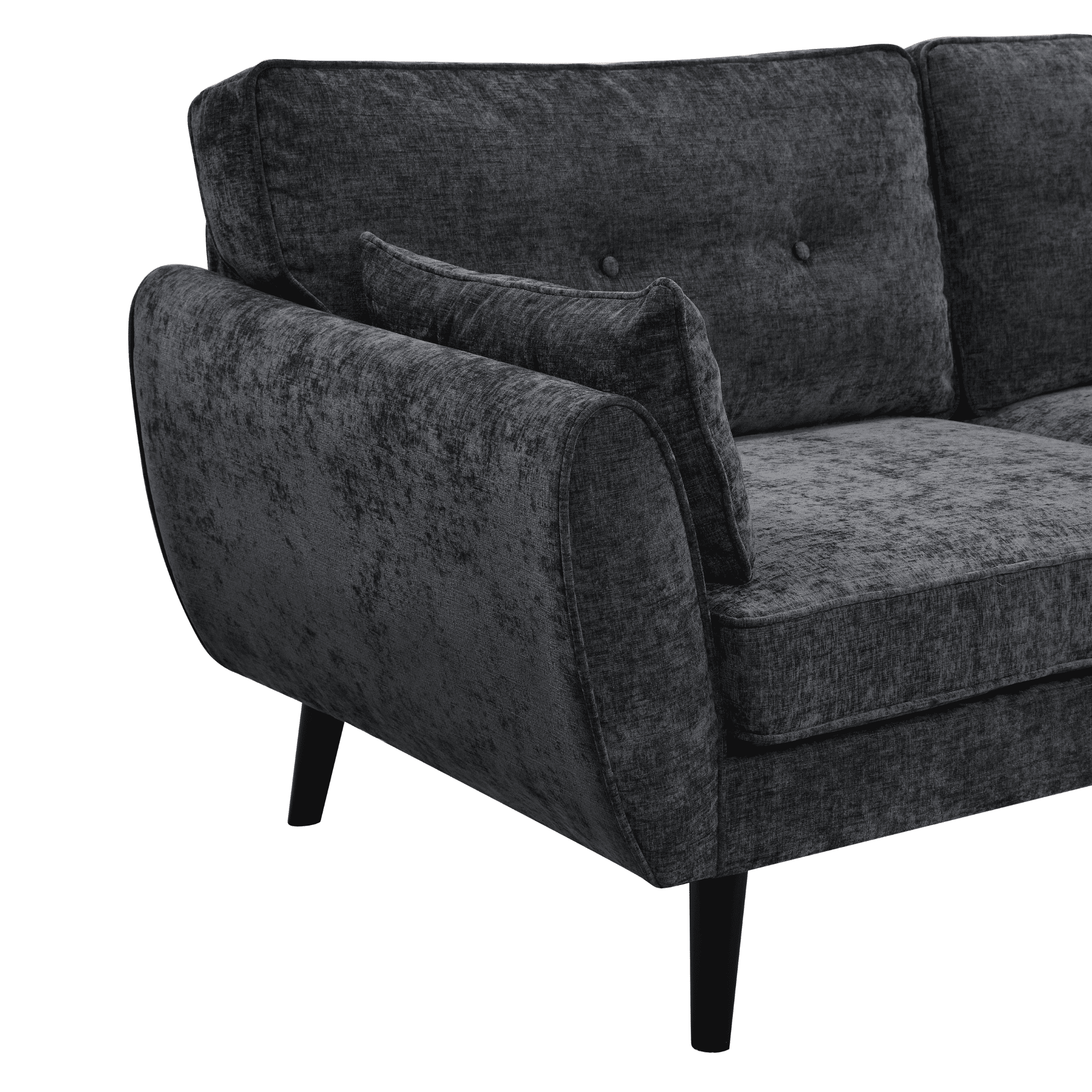 Incluye dos cojines decorativos pequeños y patas de madera negro, con 4 patas para mayor estabilidad.