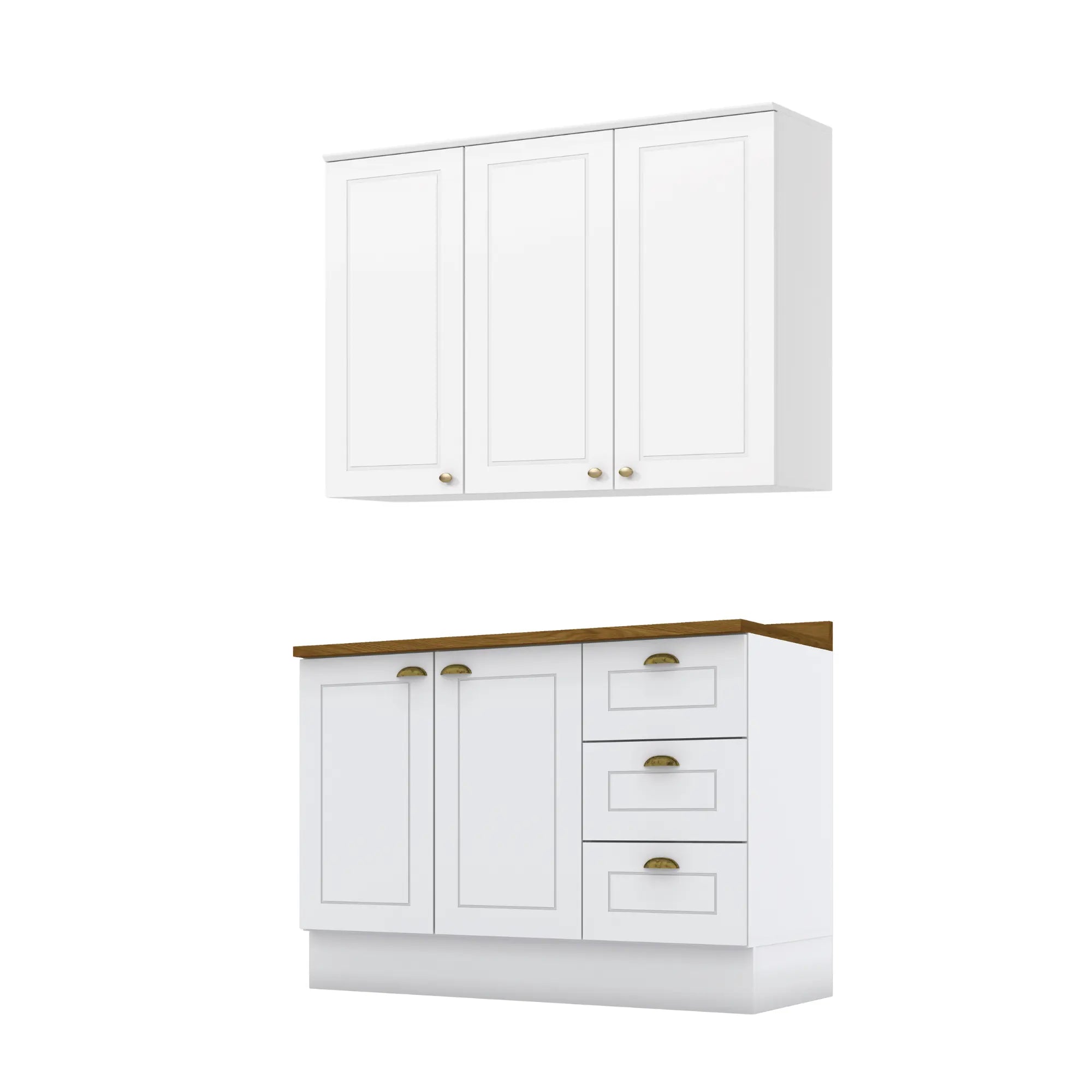 Combo de muebles de cocina Línea Americana blanco de 120 cm de ancho, incluye dos módulos: