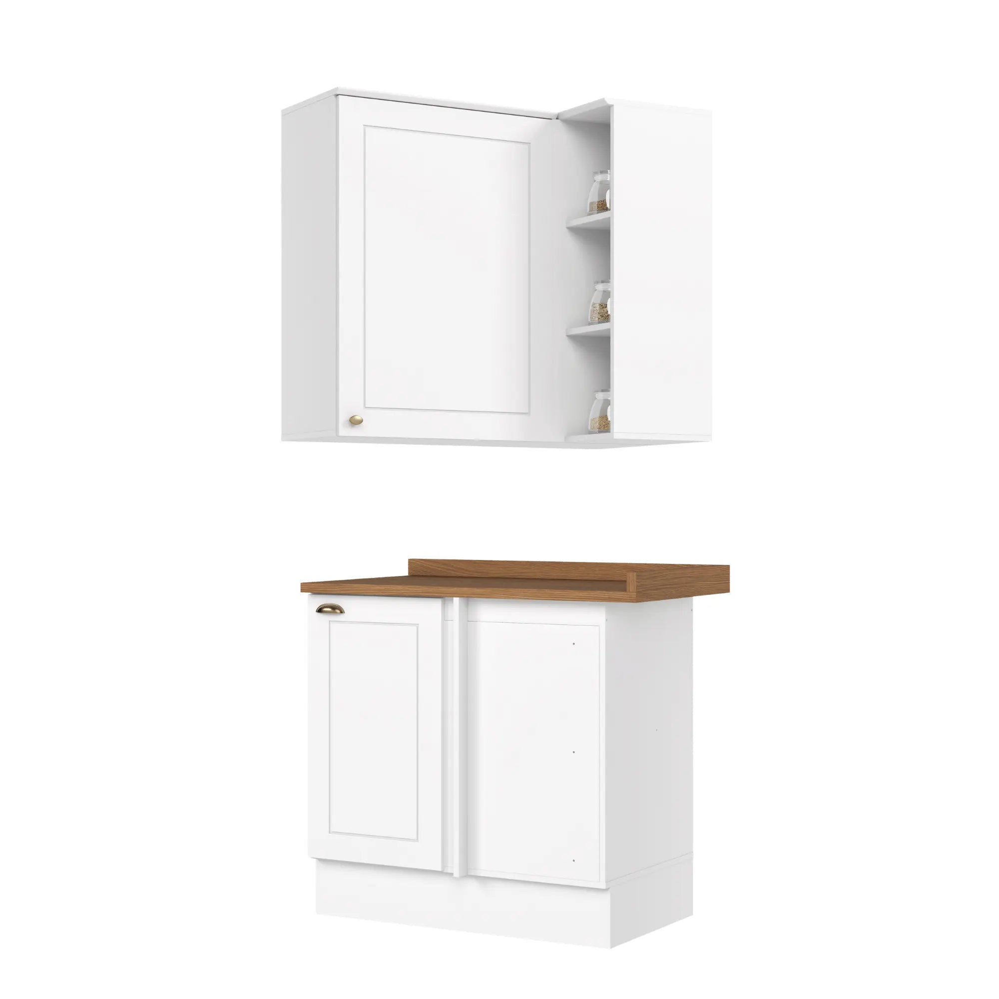 Combo de muebles de cocina Línea Americana blanco esquineros, incluye dos módulos: